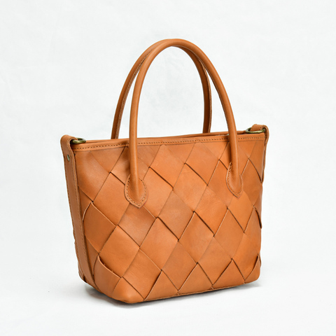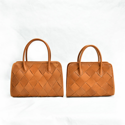 Novo Designer De Couro Genuíno Handmade Bolsas Vegetais Vintage Tote De Tecelagem De Couro Bronzeado