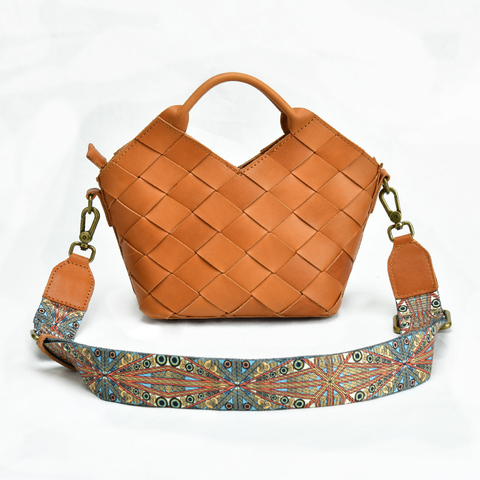 กระเป๋าสะพายหนังวัวแบบทอด้วยมือสไตล์วินเทจกระเป๋าสะพายไหล่กระเป๋าของขวัญสำหรับผู้หญิงที่ไม่เหมือนใคร